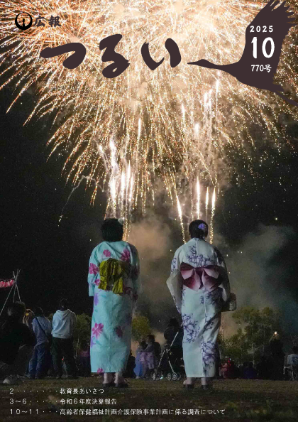 広報つるい令和7年10月号 Tweet 更新日:2025年11月28日 広報つるい令和7年10月号(PDFファイル:2.3MB) 各ページは下記からご覧いただけます。 表紙 (PDFファイル: 429.7KB) 教育長あいさつ (PDFファイル: 309.5KB) 令和6年度村の決算報告 (PDFファイル: 408.4KB) むらの話題 (PDFファイル: 779.0KB) 高齢者保健福祉計画介護保険事業計画に係る調査について (PDFファイル: 323.4KB) 国勢調査への回答はお済みですか (PDFファイル: 446.1KB) お元気ですか保健師です (PDFファイル: 354.4KB) 消防署からのお知らせ (PDFファイル: 860.4KB) みんなの掲示板 (PDFファイル: 380.9KB) 鶴居村図書館だより (PDFファイル: 377.3KB) シリーズタンチョウ (PDFファイル: 301.1KB) 裏表紙 (PDFファイル: 343.4KB)
