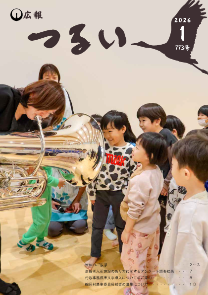 広報つるい令和8年1月号 Tweet 更新日:2026年02月03日 令和8年広報つるい1月号(PDFファイル:1.7MB) 各ページは下記からご覧いただけます。 表紙 (PDFファイル: 332.4KB) 新年のご挨拶 (PDFファイル: 426.6KB) むらの話題 (PDFファイル: 613.7KB) 高齢者入所施設のあり方に関するアンケート調査結果 (PDFファイル: 413.9KB) 行政事務標準文字導入についてのご案内 (PDFファイル: 351.6KB) 住民生活課からのお知らせ (PDFファイル: 325.9KB) 鶴居村農業委員候補者の募集について (PDFファイル: 365.4KB) みんなの掲示板 (PDFファイル: 456.7KB) 消防署からのお知らせ (PDFファイル: 467.9KB) お元気ですか保健師です (PDFファイル: 358.4KB) 鶴居村図書館だより (PDFファイル: 381.7KB) シリーズタンチョウ (PDFファイル: 319.1KB) 裏表紙 (PDFファイル: 371.2KB)