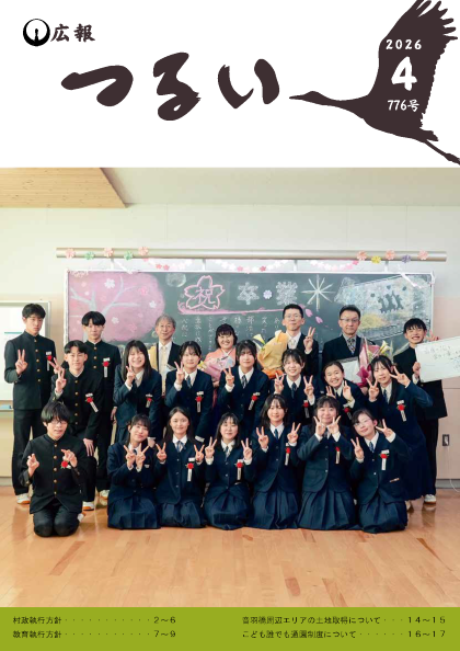 広報つるい令和8年4月号 Tweet 更新日:2026年04月03日 令和8年度広報つるい4月号(PDFファイル:2.5MB) 表紙 (PDFファイル: 349.1KB) 村政執行方針 (PDFファイル: 451.9KB) 教育執行方針 (PDFファイル: 439.3KB) むらの話題 (PDFファイル: 1.1MB) 音羽橋周辺エリアの土地取得について (PDFファイル: 388.5KB) こども誰でも通園制度について (PDFファイル: 537.2KB) みんなの掲示板 (PDFファイル: 669.3KB) お元気ですか保健師です (PDFファイル: 452.3KB) 消防署からのお知らせ (PDFファイル: 692.7KB) 鶴居村図書館だより (PDFファイル: 429.2KB) シリーズタンチョウ (PDFファイル: 350.3KB) 裏表紙 (PDFファイル: 408.5KB)